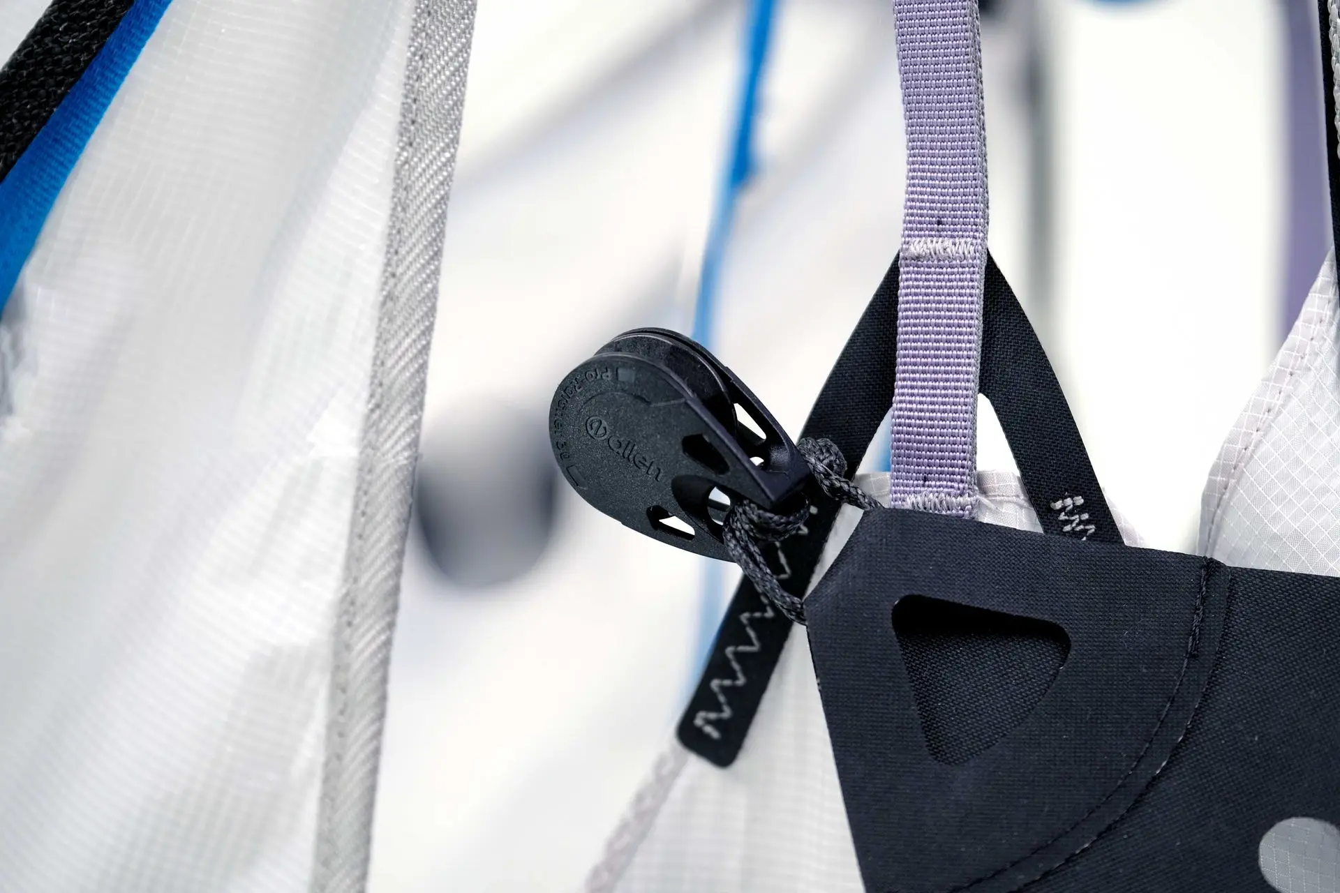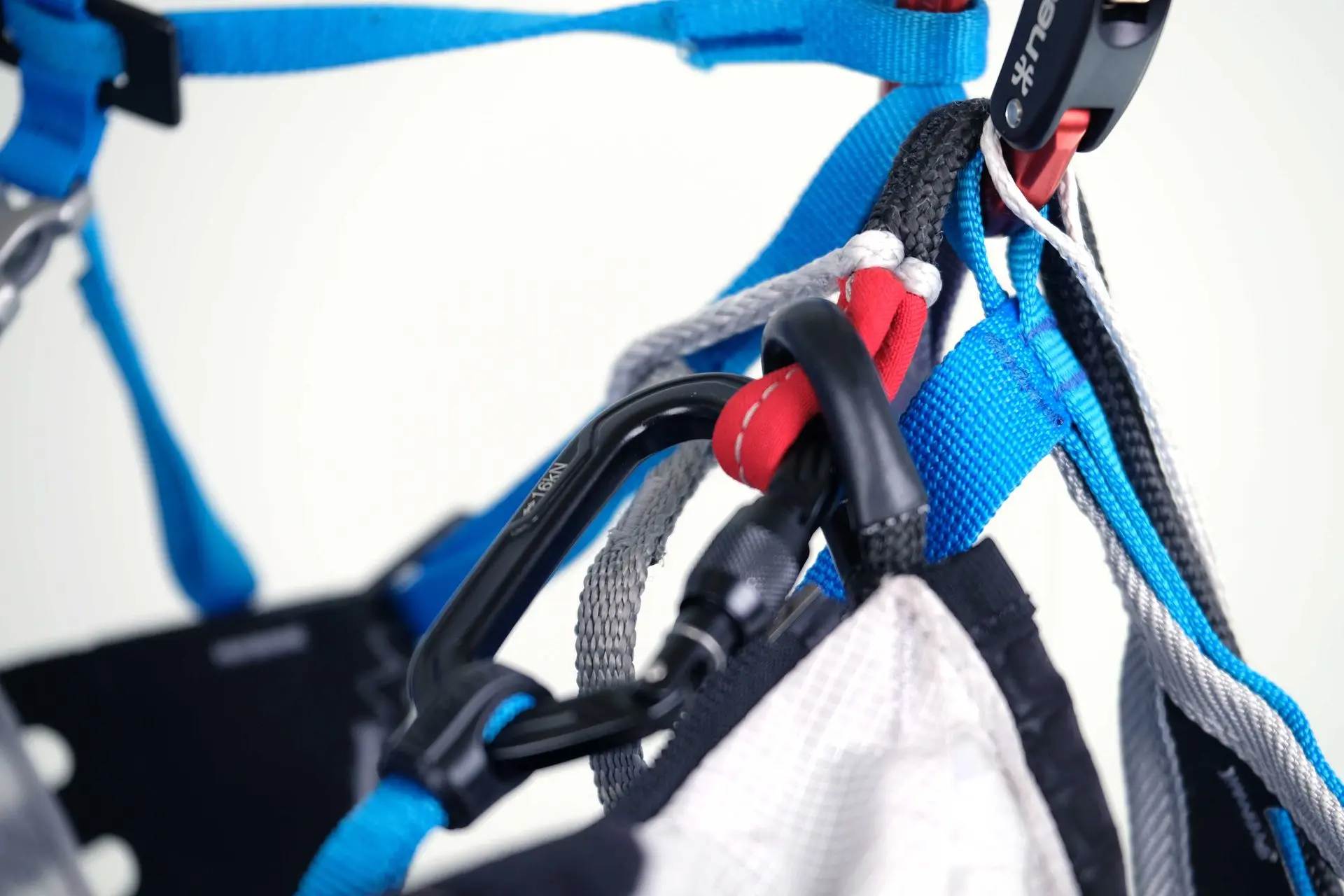 Une fois les 2 boucles des cuissardes fermées, 1 seule action permet de fermer le cocon très simplement via un mousqueton ultra-light.