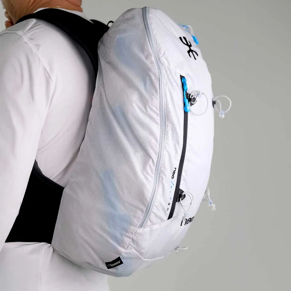 Ultraleichter 30-Liter-Rucksack mit Trail-Running-Schultergurten mit Flaschenhaltern. Die Rückenpartie und die Schultergurte sind ergonomisch geformt und für lange Gehzeiten ausgelegt.