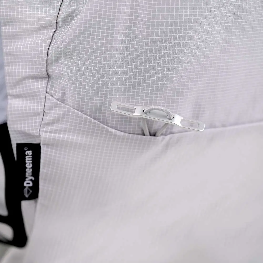 Ergonomic backpack, super weight/durability ratio thanks to the exclusive Dyneema® fabric. Classic shoulder straps with removable bottle holder.