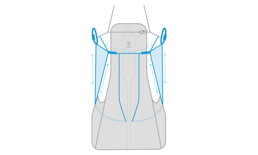 - Des réglages simples et précis : latéraux, épaules et poitrine.
