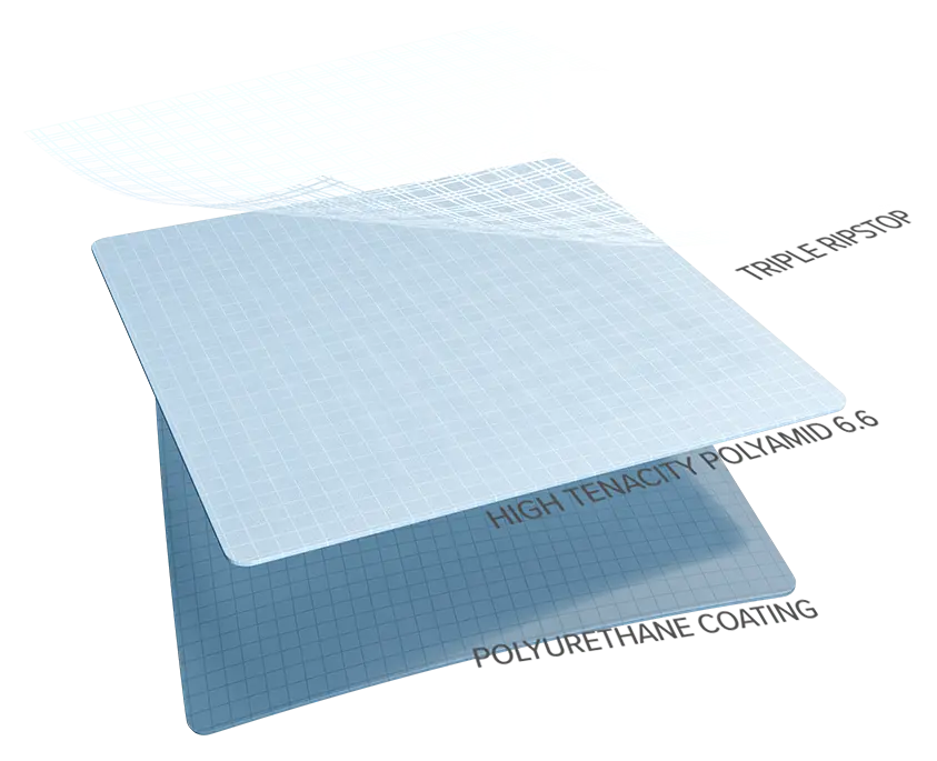 Tissus : Polyamide/Dyneema® Ripstop + Triple Ristop PA 6.6 Haute tenacité